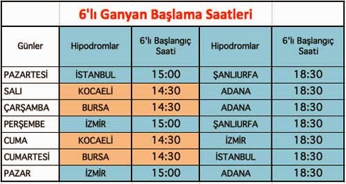 Buna göre 6’lı Ganyan başlangıç saatleri;