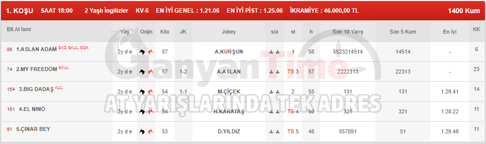 Güncel ücretsiz at yarışı tahminleri, altılı ganyan tahmini, at yarışı programı, at yarışı koşu sonuçları, muhtemel ganyanlar, AGF tabloları, gazete ve bültenlerin tahminleri, gazete ve bültenlerin bilgisayar analizleri, detaylı yarış istatistikleri, galoplar, yarış dereceleri, idman pisti görüntüleri, yazarların tahminleri, günün tekleri/bankoları, günün sürprizleri, günün bomba atları, takı değişiklikleri, yarış hayatı riskli atlar, günün pist ve hava durumu, bilgisayar puanlı yarış/altılı bülteni, canlı TJK TV, at yarışı kupon hesaplama, altılı ganyan ve tüm diğer bahis oyunlarını hesaplama gibi bir çok ücretsiz at yarışı içeriklerinin bulunduğu Ganyan Time’a hoş geldiniz.