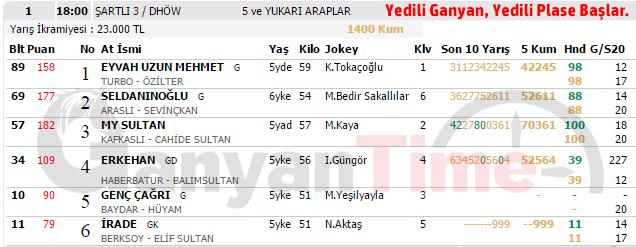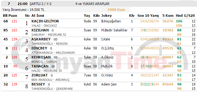 10 Şubat İZMİR Puanlı Yarış Bülteni, TJK At Yarışı Programı