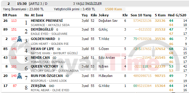 3 Şubat KOCAELİ Puanlı Yarış Bülteni, TJK At Yarışı Programı (YENİ)