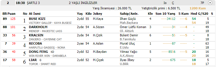 28 Temmuz İSTANBUL Puanlı Yarış Bülteni, TJK At Yarışı Programı